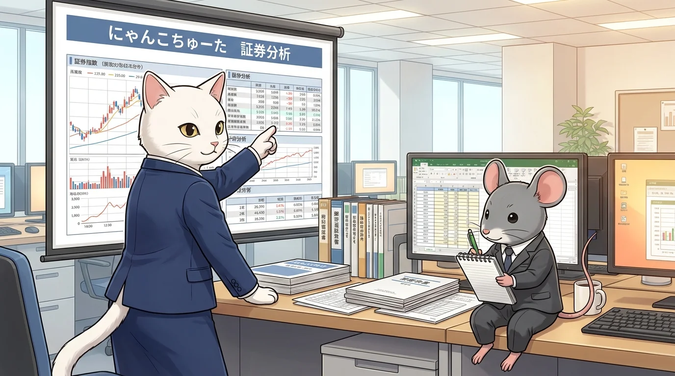 分析結果に基づき、投資家向けのレポートを執筆します。独自の視点で目標株価や推奨投資区分を設定します。