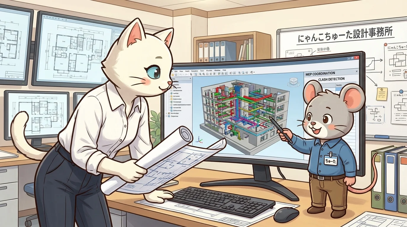 "BIMの画面上では数ミリの隙間があるのに、現場に行くと梁やボルトに干渉して配管が通らないと言われ、電話で謝り倒す日々があります。"