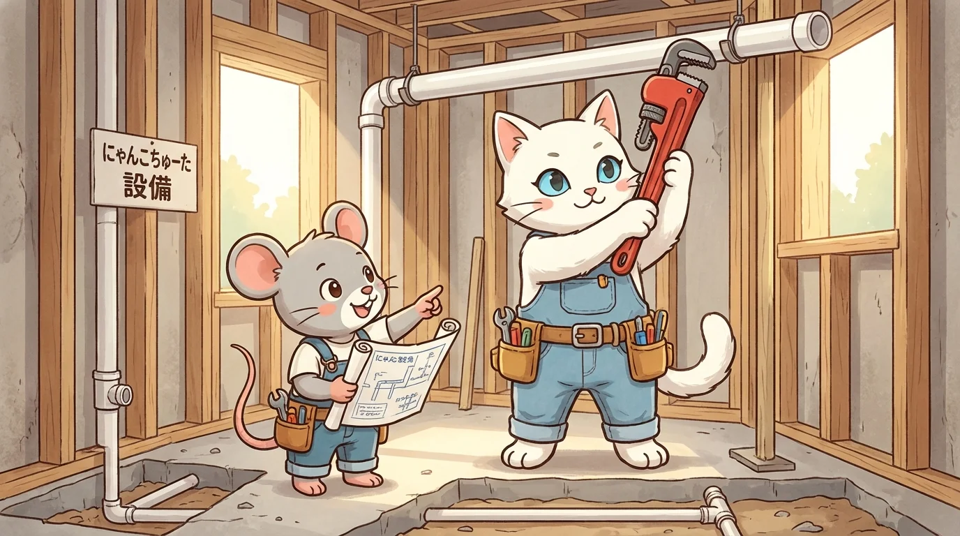 キッチン、トイレ、風呂などの水回り設備の配管を設置し、生活に不可欠な水の供給と排水を制御します。