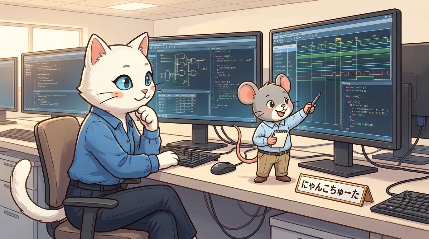 実際には、数ヶ月かけて泥臭くシミュレーションを回し続け、一つの信号のタイミングが数ナノ秒ズレていることに頭を抱える毎日です。