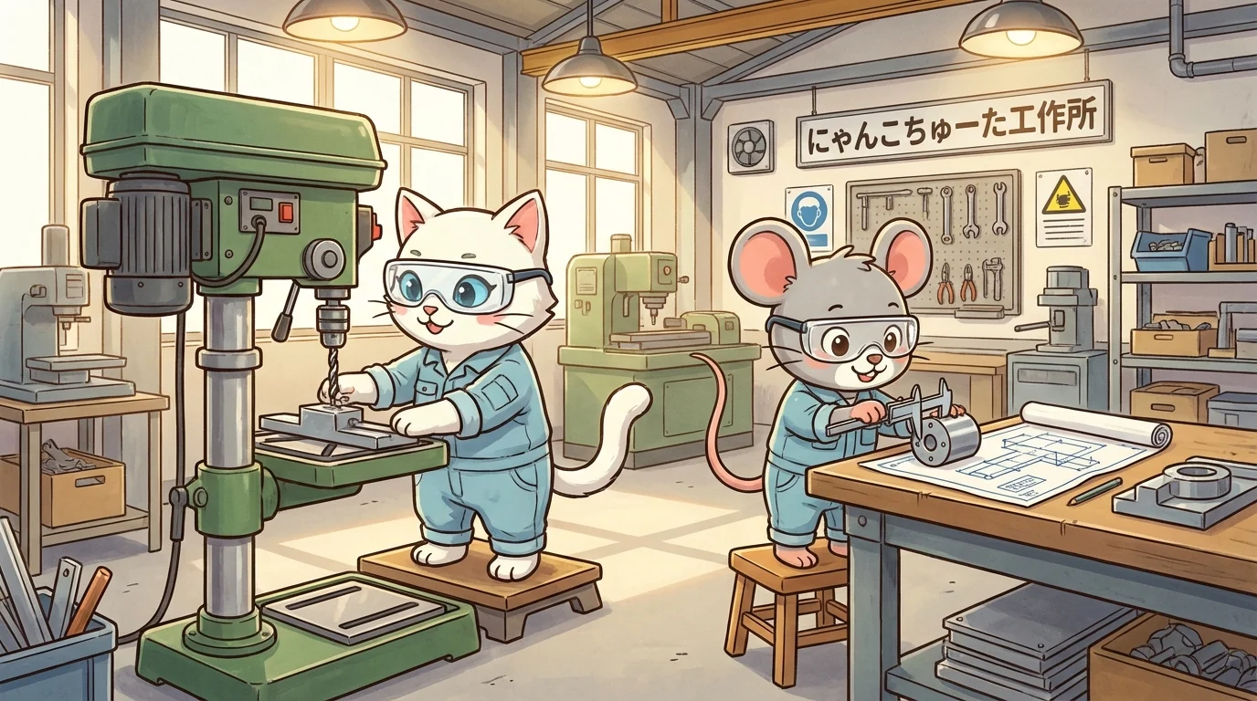 "ボール盤は『穴を開けるだけ』の機械だと思っていましたが、実は穴の内側を鏡面のように磨いたり、複雑なネジを切ったりと、工具次第で魔法のように用途が広がる万能マシンだと知って驚きました。"