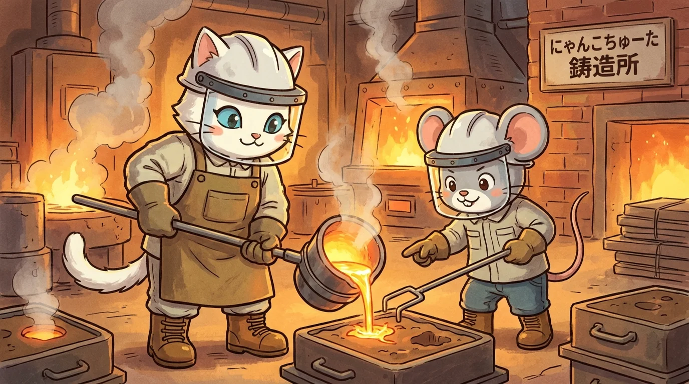 - ただ金属を流し込むだけだと思われがちだが、実際は配合や温度で品質が劇的に変わる科学的な仕事である