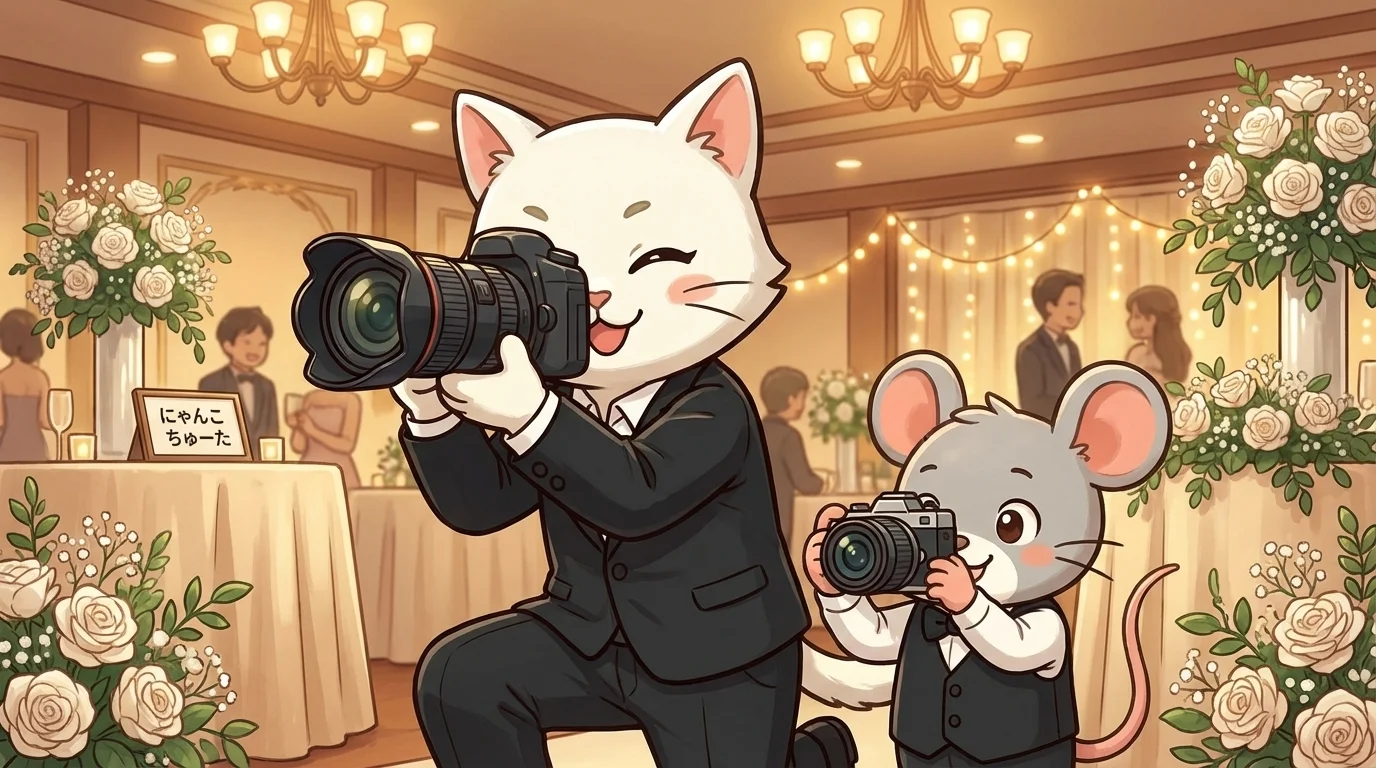 "実は、カメラの腕前と同じくらい「時間管理」が重要です。1分1秒を争う式の進行の中で、どれだけ素早く移動し、どれだけ効率的に集合写真を撮るか。ある意味、職人というよりアスリートに近い感覚です。"