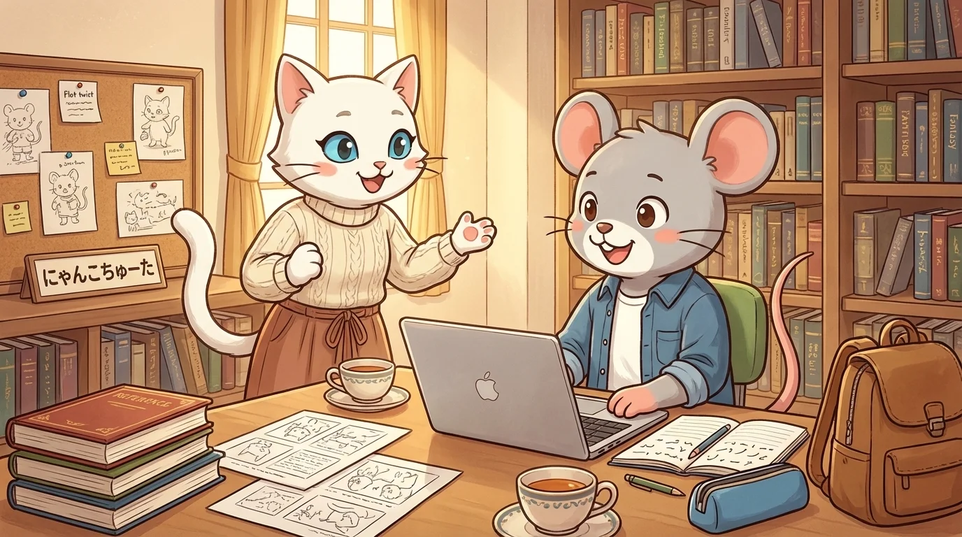 物語の骨組み、キャラクター設定、世界観、結末までの流れをまとめます。編集者と打ち合わせを行い、作品の方向性を決定します。