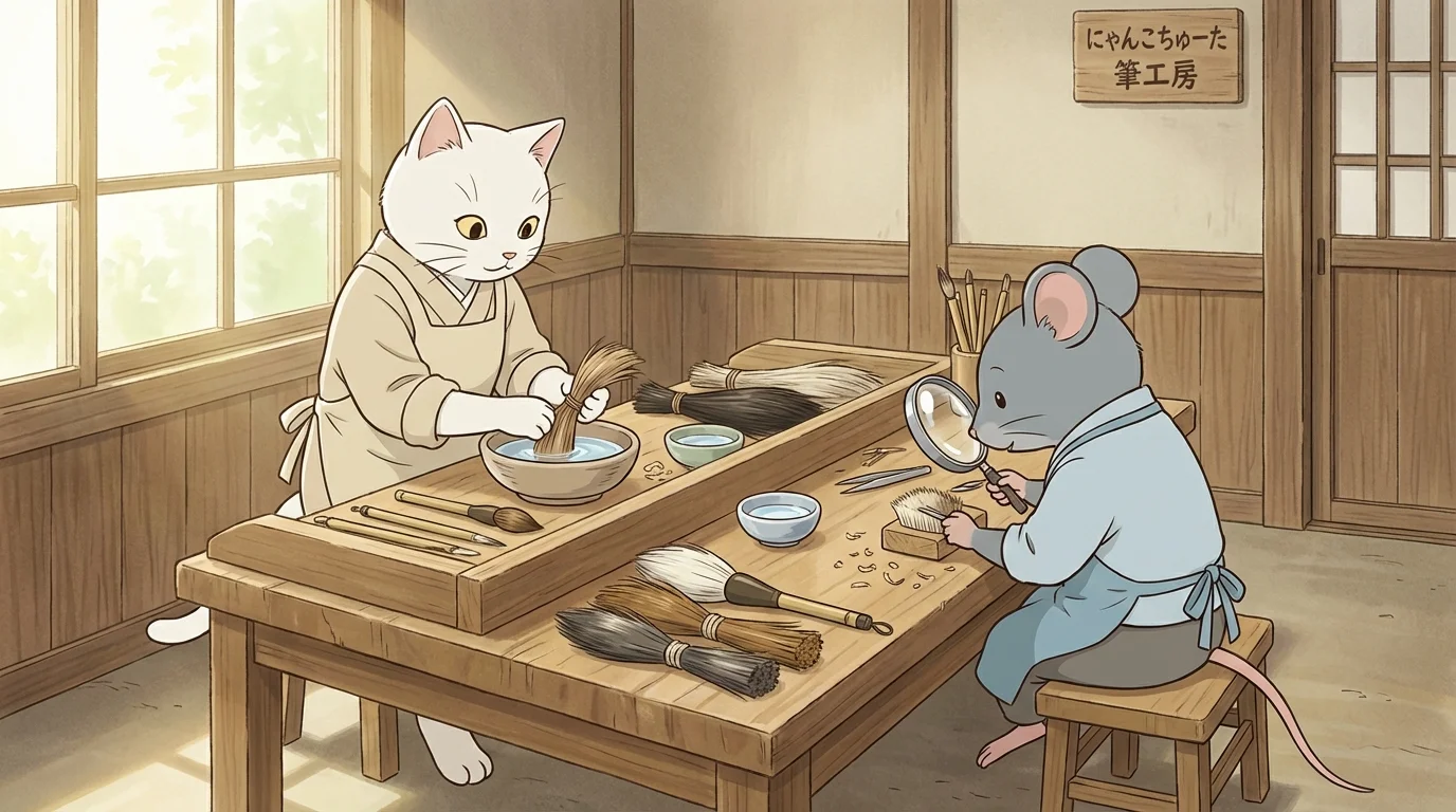 - 💎筆職人の指先は、毛のキューティクルの向きを感じ取るために異常に発達している
