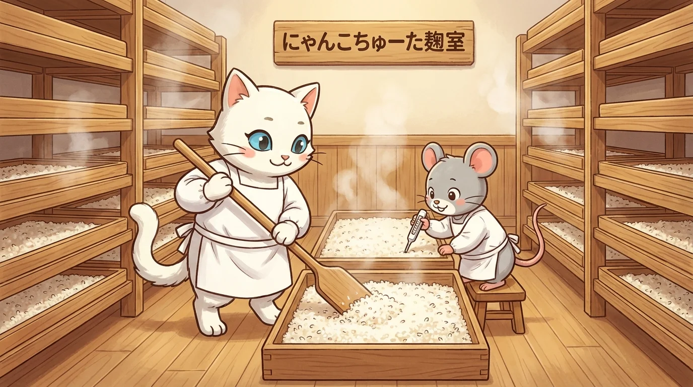 "どれだけ気をつけていても、服や靴に付着した「納豆菌」が麹室に入ると全滅する恐れがあるため、シーズン中は納豆を食べることが禁じられるという地味な制約があります。"